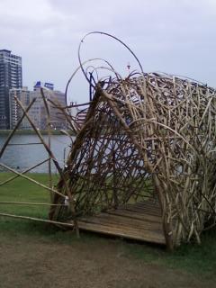 新潟市ぐるみで『水と土の芸術祭』とやらをやってて、その作品の内の一つ。中に入ってもよし。