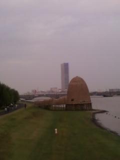 帰りにそういえば川べりに妖しげなオブジェがあるのを思い出し、行って見ることに。