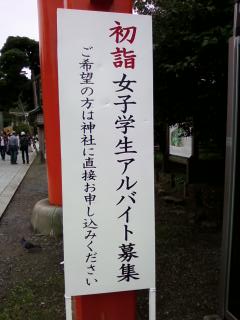 初詣の巫女さんバイトはてっきり内輪のツテとかで決まってるんだと思ってたら、なんか募集してました。性質上、年齢と性別の制限がつけられないことになってるハロワには求人出せないよな。